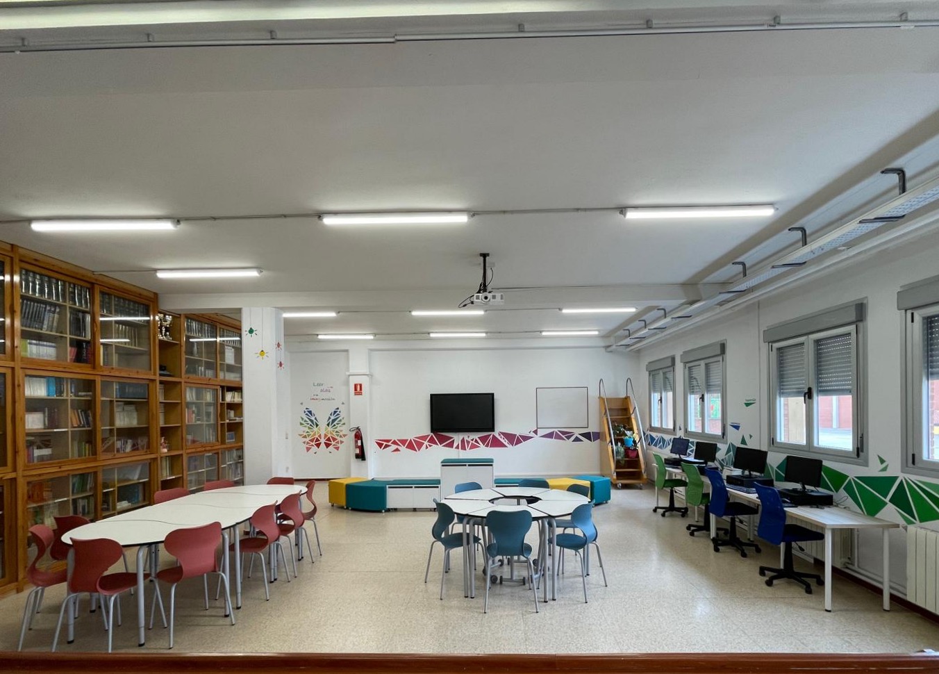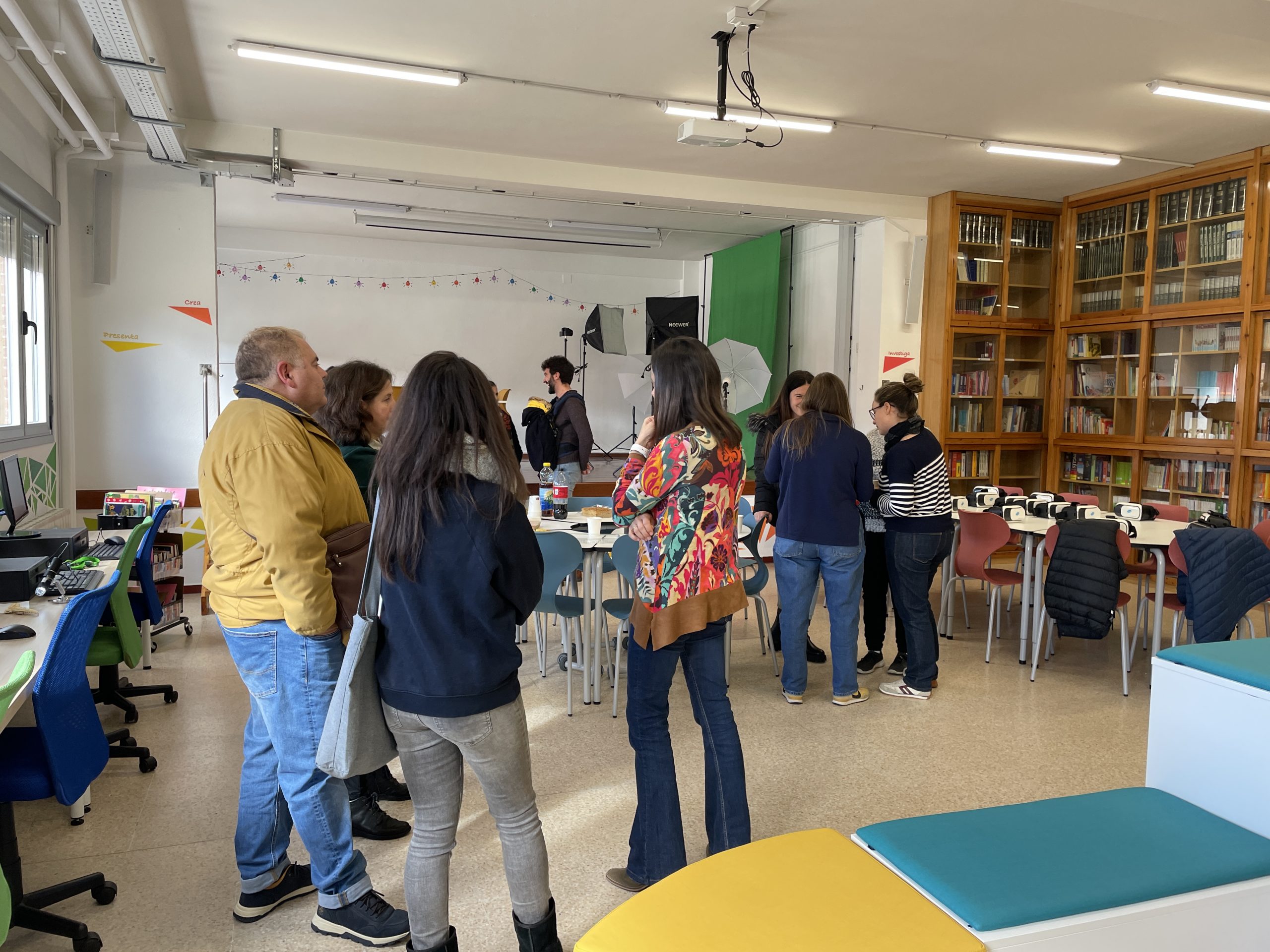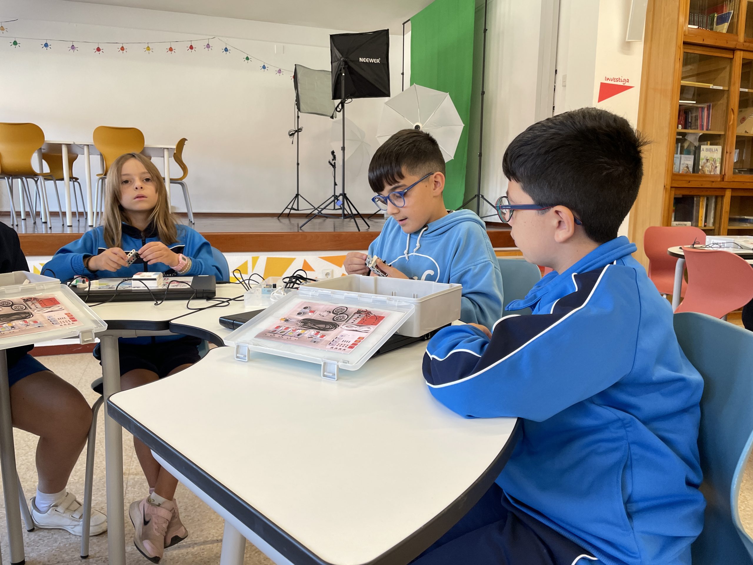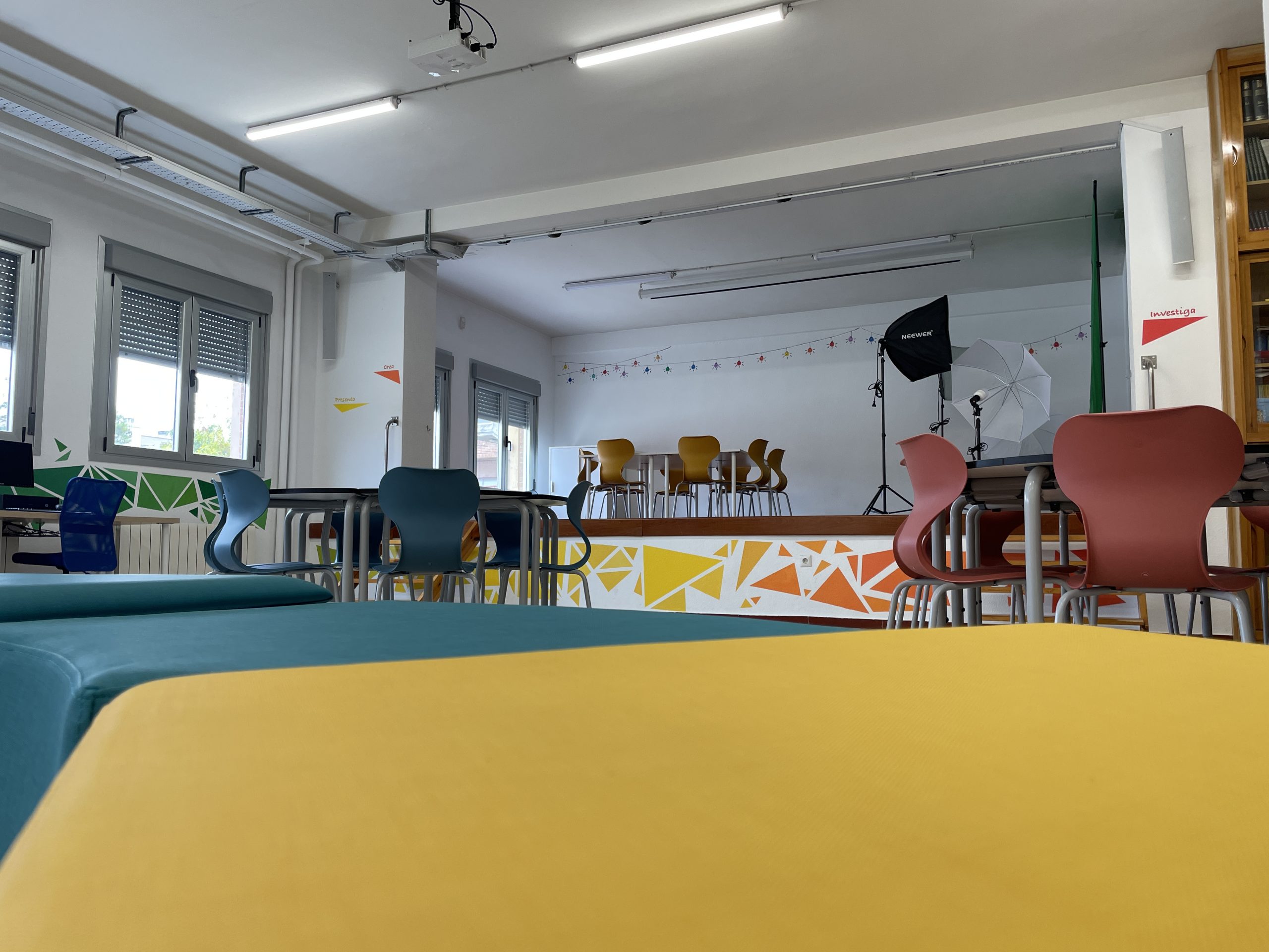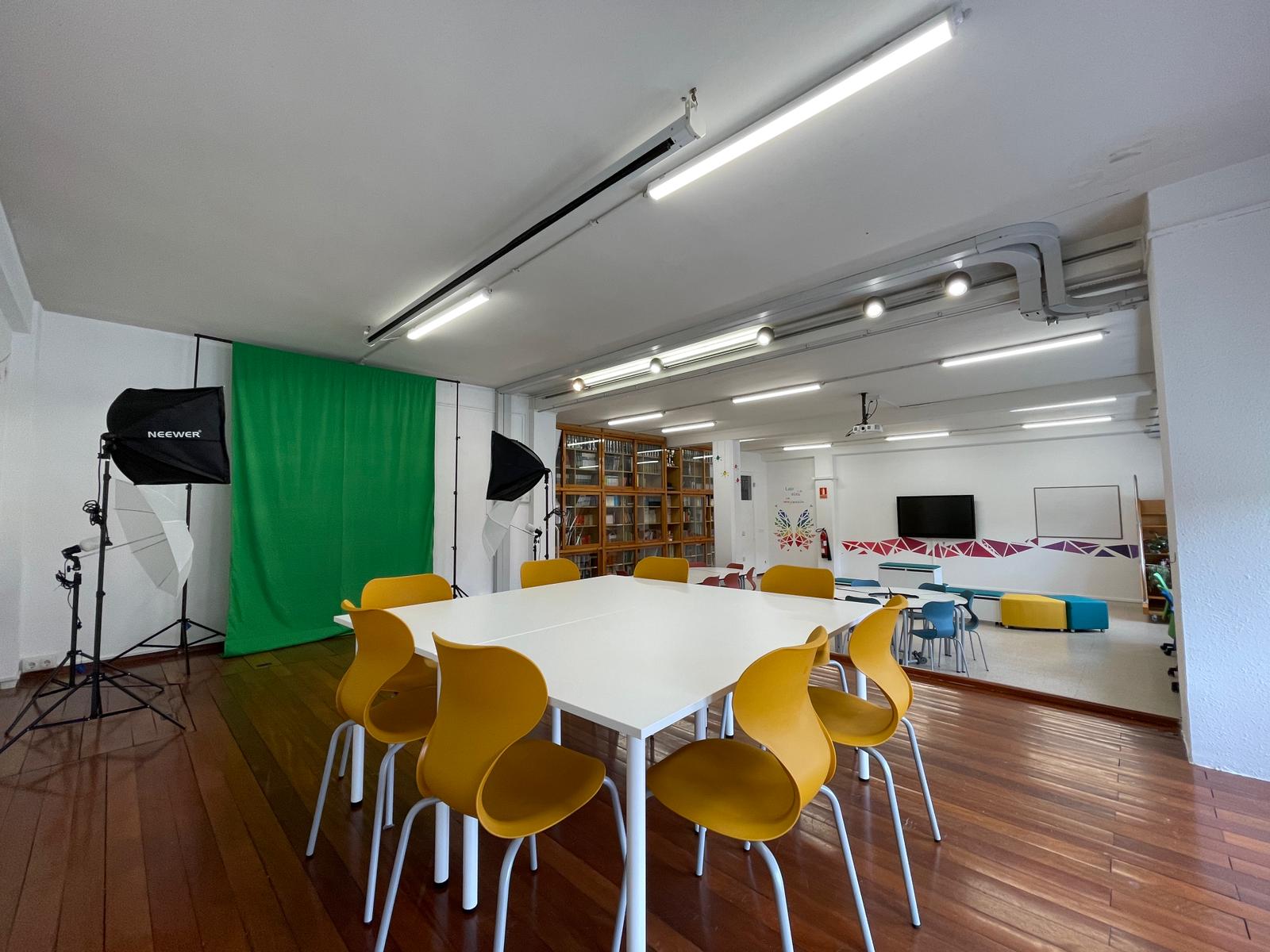 Cada zona está equipada con tecnologías específicas para potenciar el proceso educativo. Desde pantallas táctiles hasta dispositivos móviles variados, mesa de mezclas, micrófonos y auriculares, cámaras de grabación, gafas de realidad virtual (VR) y mobiliario escolar especializado con facilidades de conexión. Este entorno tecnológico favorece la creación de un espacio dinámico y estimulante.